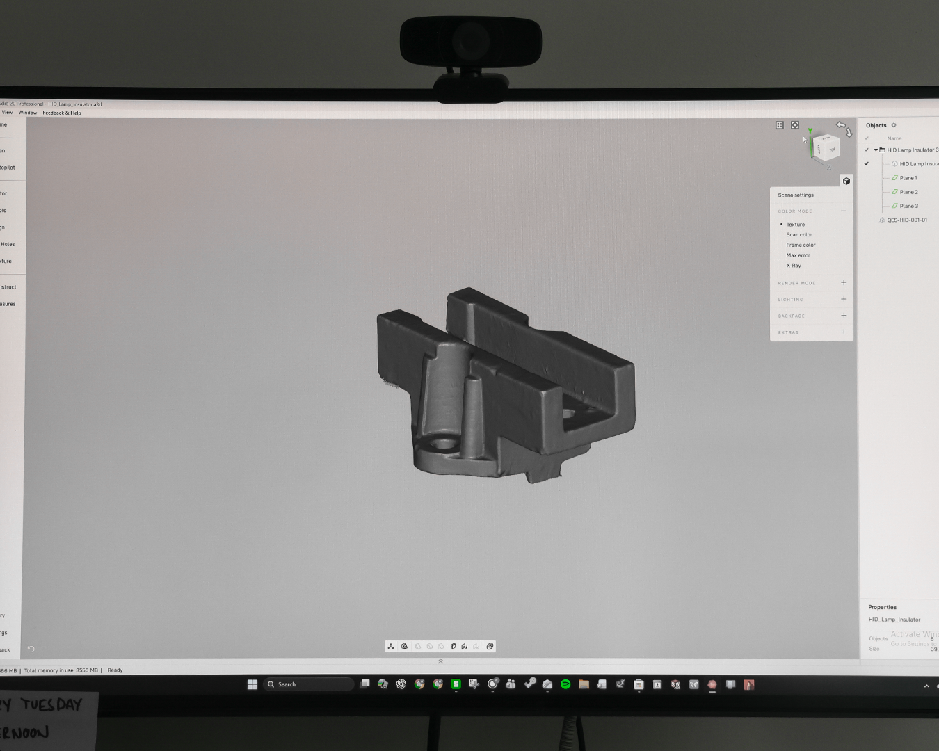 The original insulator had clear signs of heat exposure and long-term wear, making manual measurement unreliable. We used high-resolution 3D scanning to digitise the part and capture the complete geometry, even compensating for deformation.